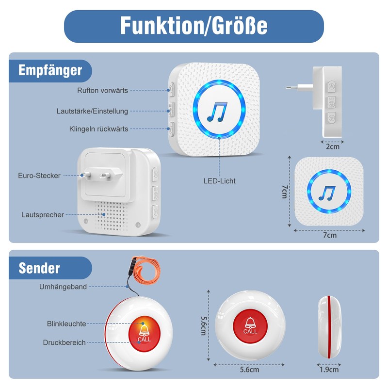 - The perfect gift for the elderly at Christmas: Emergency call button for seniors. Ideal as an alarm for people who need help quickly, the caregiver does not have to be with the elderly all the time, seniors emergency call plug and play. The elderly do not have to scream, as long as people press the call button and house emergency call rings, elderly people can get help, house emergency call it can also be used as a doorbell
