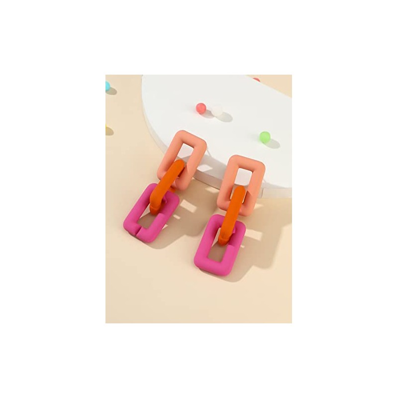Chunky Acrylic Link Earrings Multicolor Thick Rectangle Paperclip Link Chain Earrings Rainbow Resin Geometric Paperclip Chain Drop Dangle Earrings Funky Jewelry for Women - Colorful