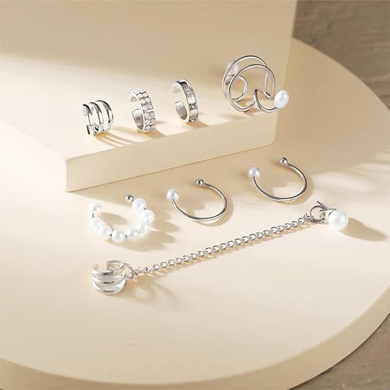 - Pearl Cuff Earrings: You will get 8 pcs ear cuffs, there are two colours to choice. You can choose to wear these clips individually or stack them together.