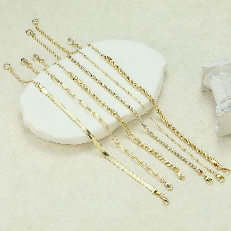 • Chunky Gold Bracelet: This bracelet features a multi-layer stacking design with thick and thin chains, creating a rich sense of layering, suitable for wearing alone or stacked with other jewelry, showing individuality and fashion style.