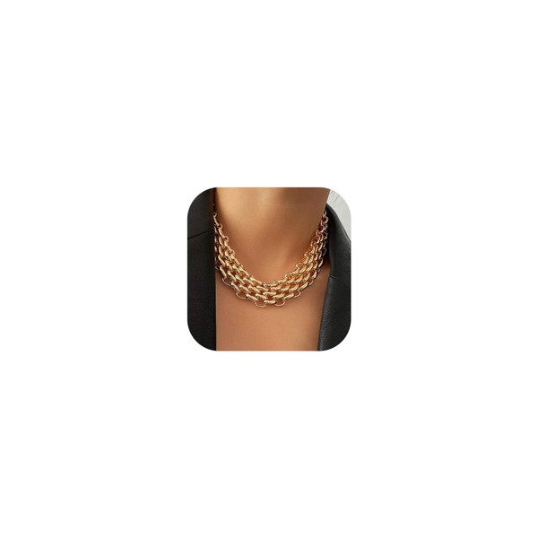 Chunky Gold Necklace for Women Punk Statement Necklaces Trendy Thick Cuban Link Chain Necklace Gold African Collar Necklaces Summer Outfits Accessories for Women