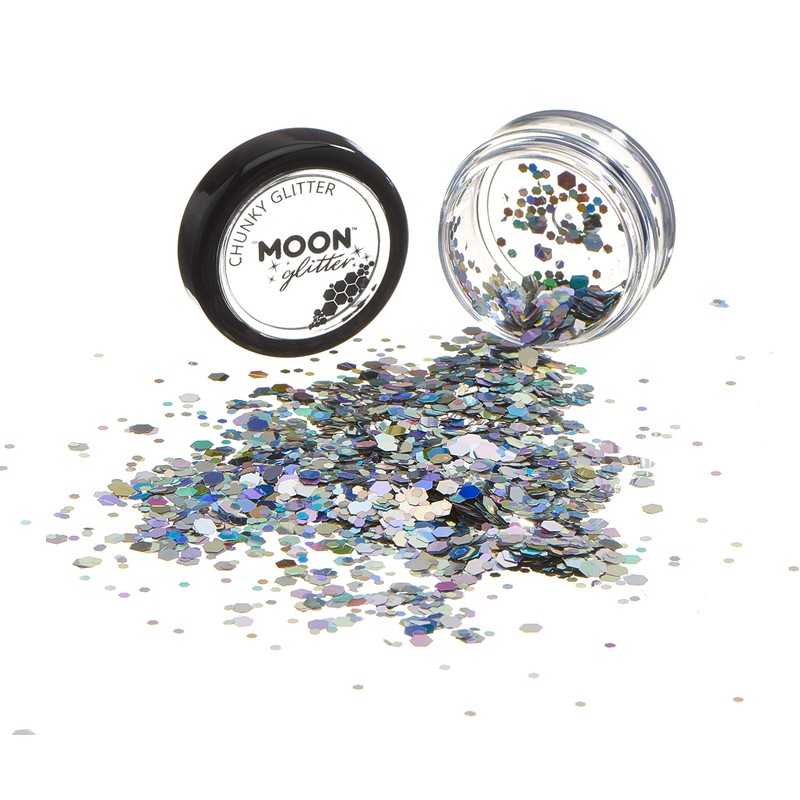Chunky Holographic Glitter by Moon Glitter - Silver - Cosmetic Festival Makeu...