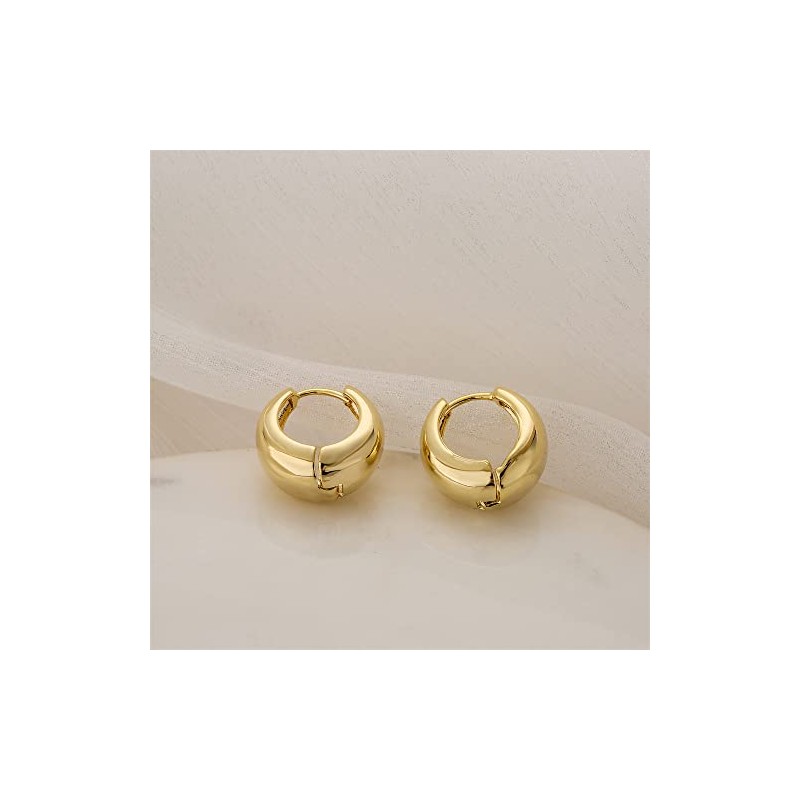 Chunky Thick small Gold Hoop Earrings for Women Girls - 18K Gold Plated Hypoallergenic Lightweight Earrings Set - Gold Earrings Jewellery Gift for Women 1 Pair