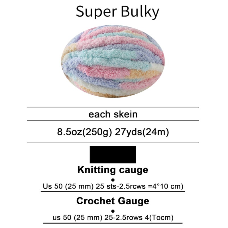 - 【 Professional-Grade Specifications】True jumbo weight (yarn bee chunky yarn equivalent) with knitting gauge: 2.5R/10cm (US 50). Crochet gauge: 4"x4" = 2.5 rows sc. Each skein = 250g/32yds. Chunky yarn for crocheting delivers consistent thickness - no uneven surprises! Knitters, crafters, and DIYers love its premium loft.