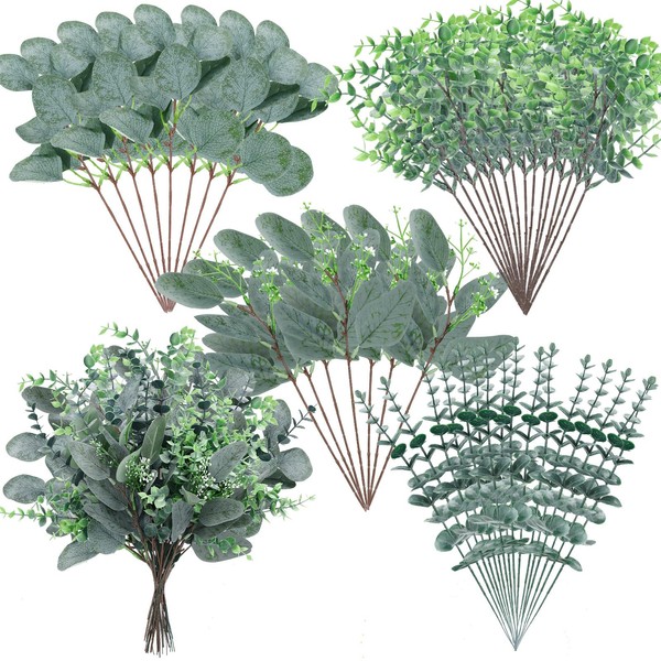 - You Will Get: 32 pieces artificial eucalyptus leaves stems with 3 types, including 14 pcs faux long eucalyptus leaves stems, 8 pcs faux silver dollar eucalyptus branches, 5 pcs faux seeded eucalyptus leaves branches, 5 pcs faux eucalyptus leaves stems; Sufficient quantity to meet the use and replacement requirements of your wedding party decoration and daily decoration