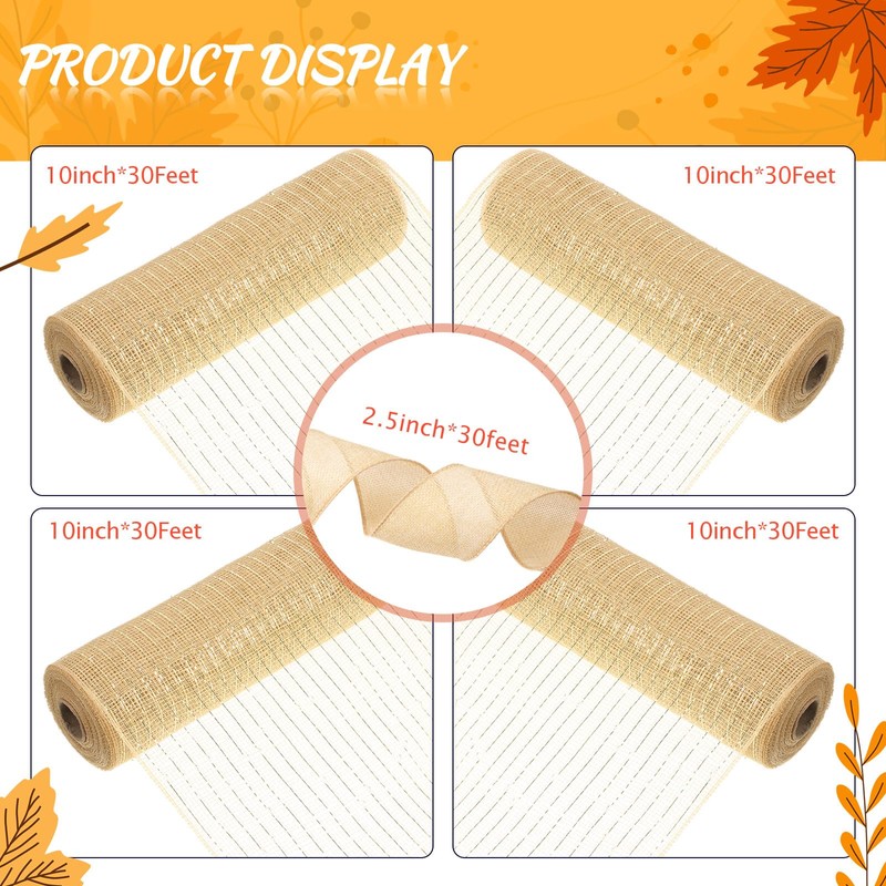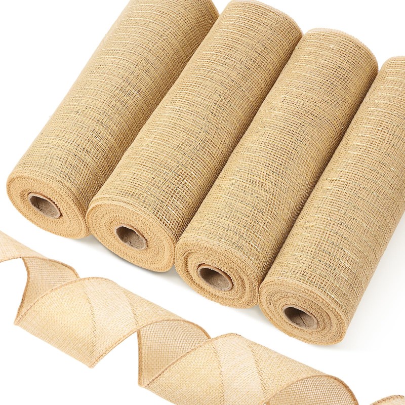 - Ideal Size: package comes with 5 rolls 50 yards in 2 different styles, 4 rolls poly burlap mesh ribbons in 10 inches wide x 30 feet long, 1 roll natural color ribbon 2.5 inches x 30 feet long, which is long enough to meet your various decoration or craft needs, and you can easily cut them to various lengths according to your preference or practical needs