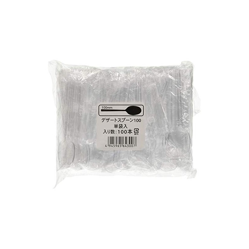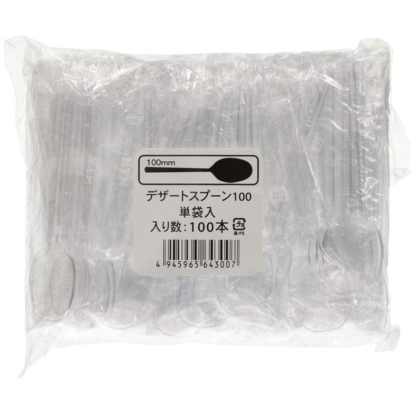 Chuo Kagaku Disposable Spoons, Dessert, Plastic Bag, Individual Packaging, Lunch Box, Takeout, Transparent, Pack of 100, 3.9 inches (10 cm)