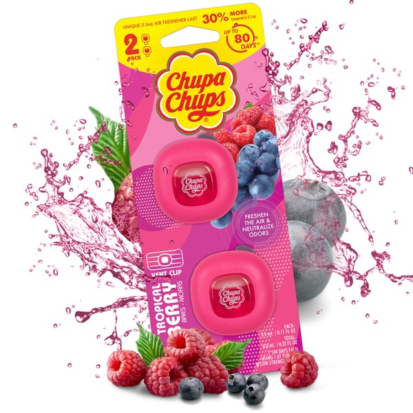 Chupa Chups Tropical Berry Car Air Freshener Vent Clips - Cute Car Accessories, Long Lasting Freshies Vehicle Scents Air Freshener for Women, Area Deodorizer Odor Eliminator New Fresh Smell, 2 Count