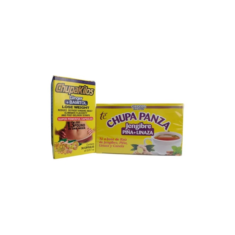Chupa Kilos 30 Caps + Te Jengibre Piña Linaza 30 Sobres