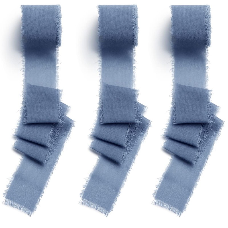 CHUQING 38 mm x 6 m Gift Ribbon Bow Ribbon, 3 Rolls, Blue, Chiffon, Festival Ribbons for Gift Wrapping, Wedding, Bouquet
