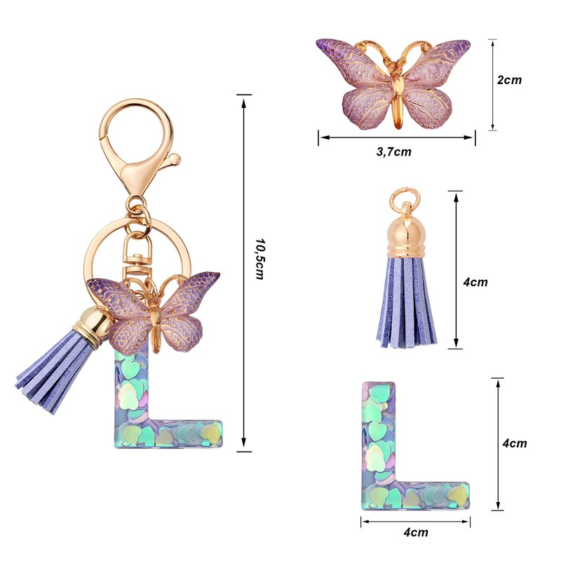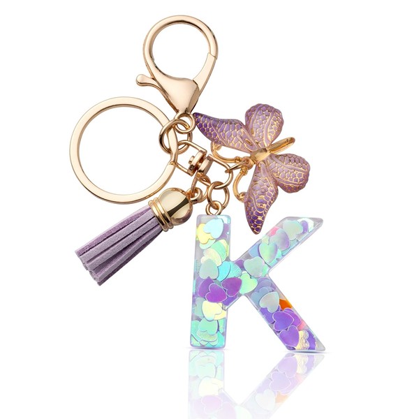 - Stylishly designed: With heart-shaped sequins on the letters, combined with a butterfly pendant and a purple tassel, this women's key ring is extremely cute and stylish. It meets diverse decorative needs and is the perfect addition to your bag.