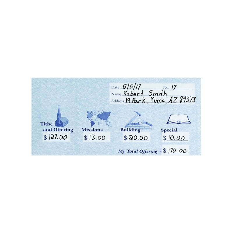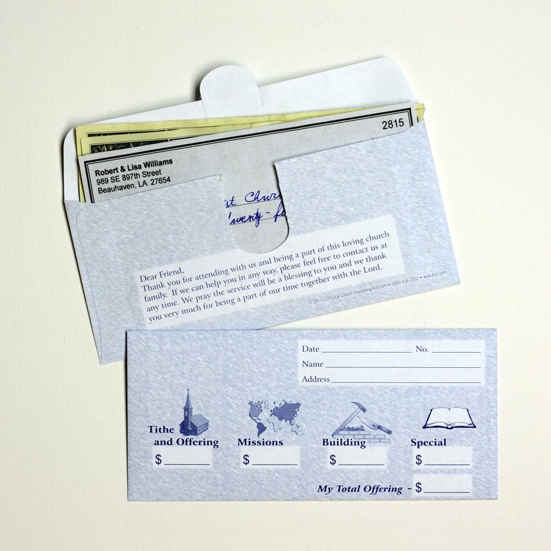 Church Offering/Tithe Donation Envelopes, Friendly Welcome Message, Missions, Building & Special, Simple Design, Easy-open Tab, Fits Bills & Checks - Blue - Package of 125