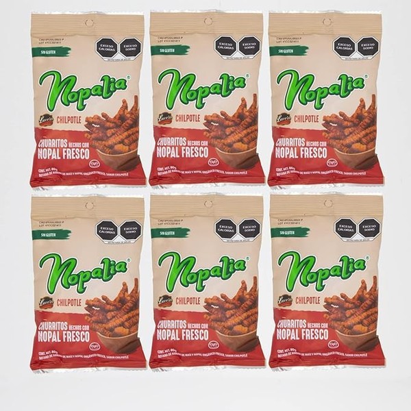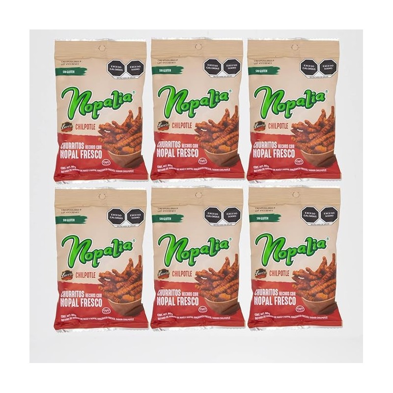 - Authentic Ingredients: Made with fresh organic nopal and nixtamalized corn flour for a genuine taste of Mexico. Smoky Chipotle Flavor: Infused with real chipotle chili for a rich, smoky heat. Health-Conscious Snacking: High in fiber, low in saturated fat, and free from cholesterol and trans fats. Vegan-Friendly: Suitable for vegan diets, offering a plant-based snack option. Convenient Packaging: Each pack contains 6 individual 80g bags, perfect for on-the-go snacking or sharing