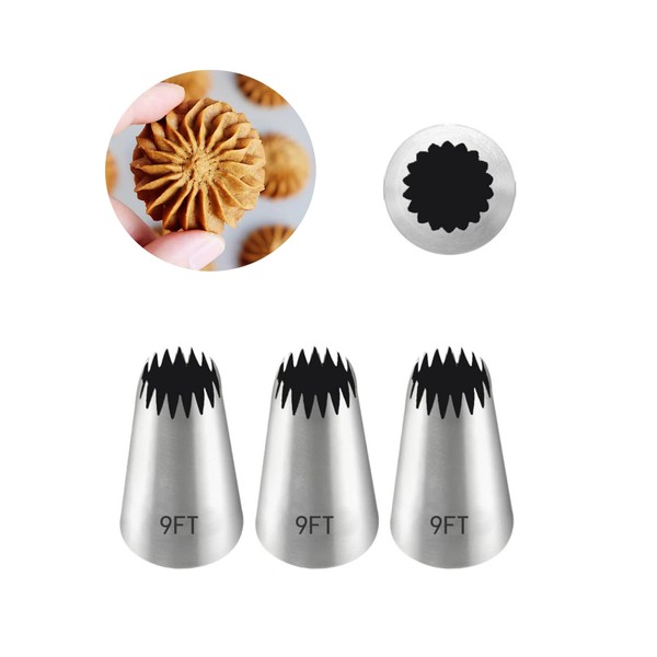 Churro Piping Nozzle,Piping Nozzles for Eclair,Extra Large Star Nozzle for Piping,Open Star Icing Nozzle Tip 9FT,3 Pcs