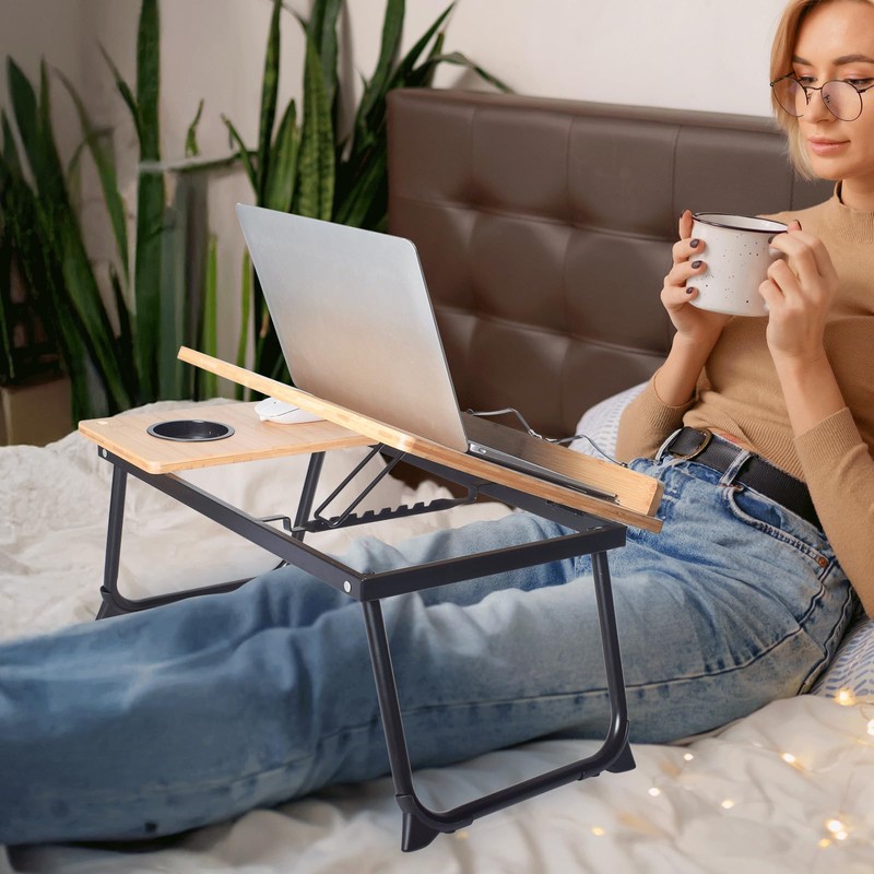 CHURRUP Laptop Desk for Bed or Couch, Lap Desk, Breakfast Tray, Foldable Bamboo Lap Desk with Cup Holder,for Working Reading Writing, Eating, Watching Movies for Bed Couch Floor