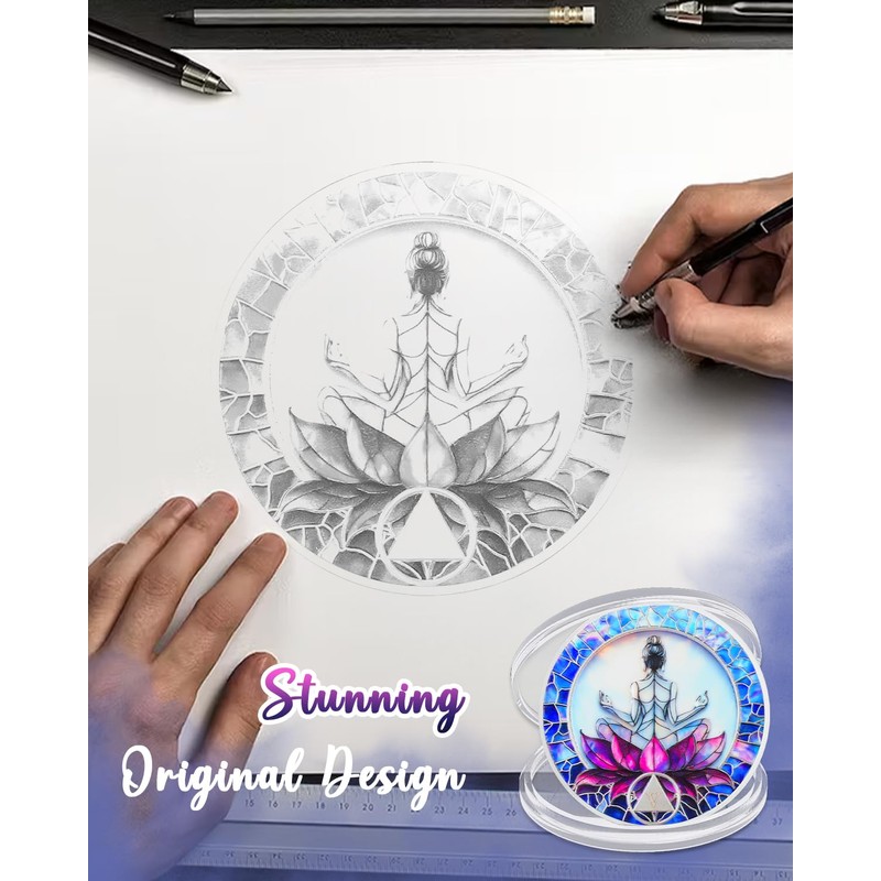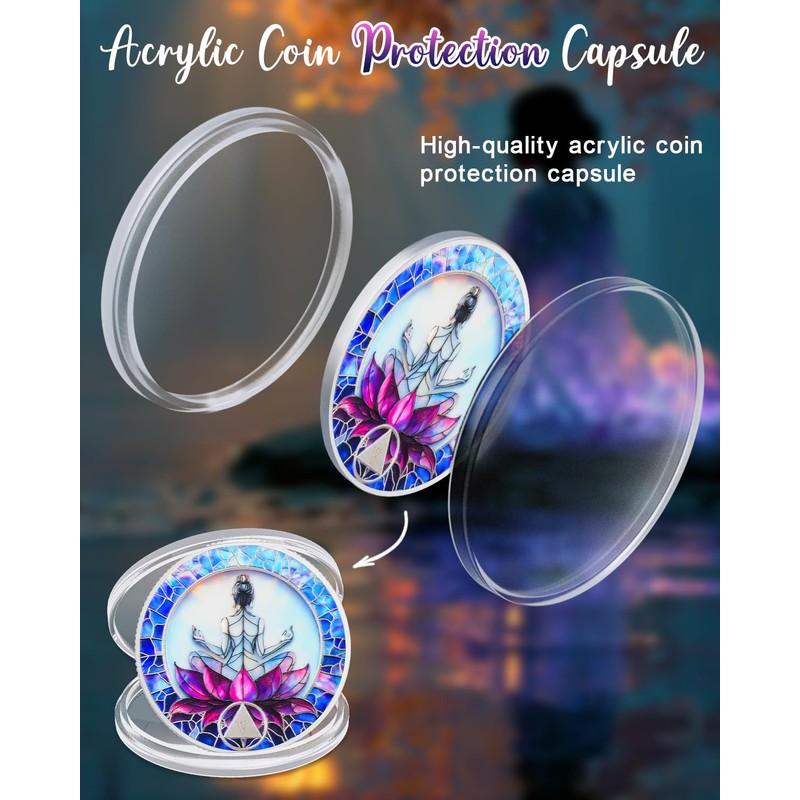 - Sitting in the Lotus, Growing Toward the Light: One side of this 5 year sobriety coin shows a meditator sitting on a blooming lotus, calm and focused, symbolizing self-discovery and inner balance. She embodies calmness and the transformation that comes with sobriety. Despite past challenges, every sober day is a step toward a higher self and inner freedom. The lotus symbolizes purity and enlightenment, supporting the meditator and representing rebirth and clarity in healing