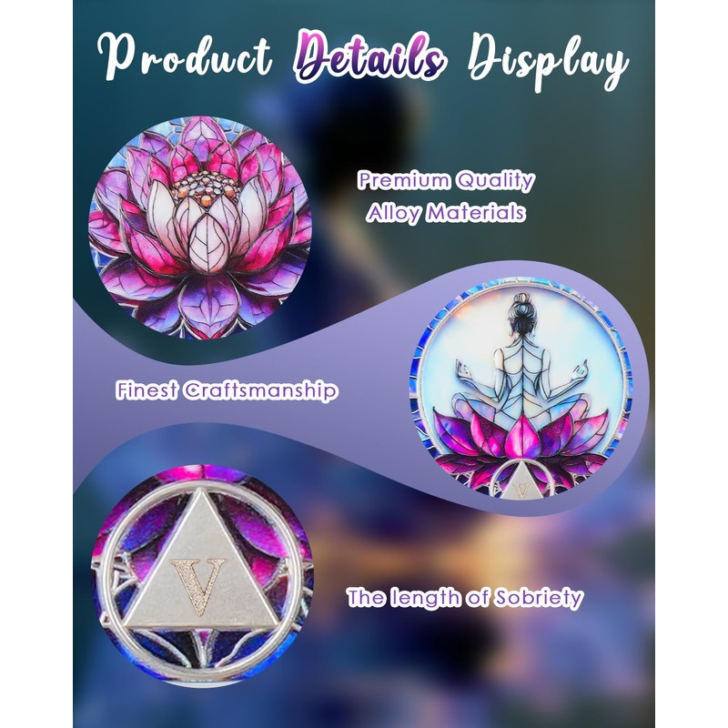 - Inspirational Message: This sobriety chip combines the symbolism of the lotus and meditation, representing rebirth, inner purification, and self-transformation. The lotus emerging from the soil symbolizes each breakthrough on the journey to sober, reminding us that no matter the past, we can move toward awakening. Meditation elements promote inner peace, reduce anxiety, and provide emotional stability. More than a tribute to victories, it offers comfort and encouragement during emotional lows
