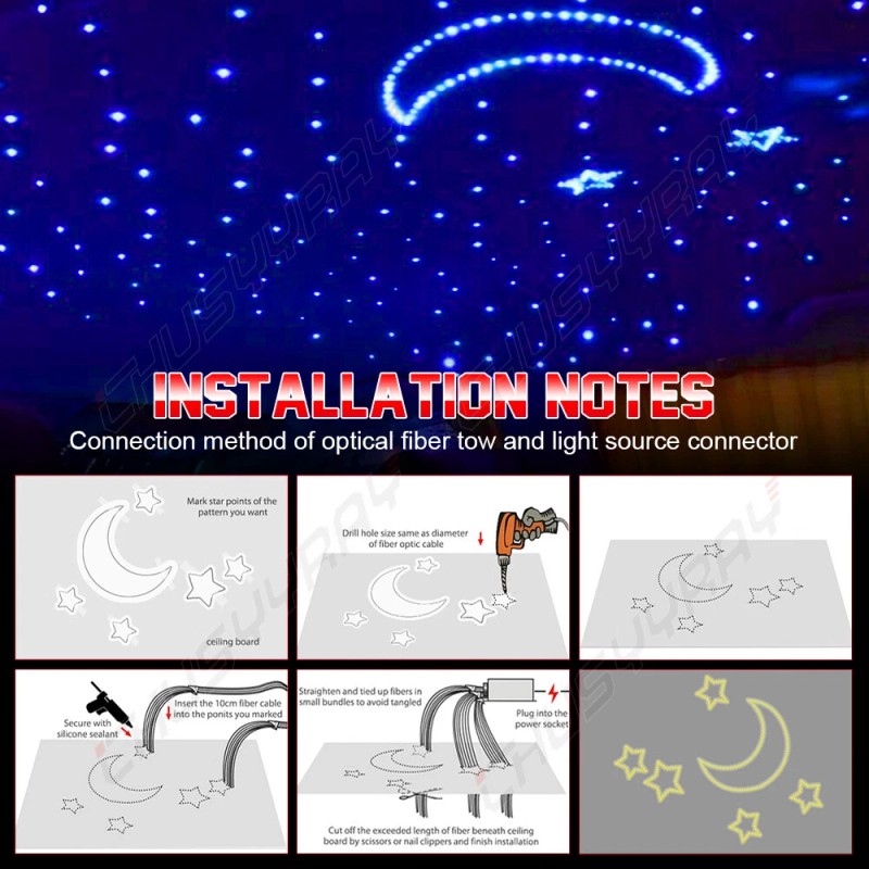 CHUSYYRAY 300PCS Fiber Optic Light Kit Car Star Headliner Ceiling Lamp BT 16W