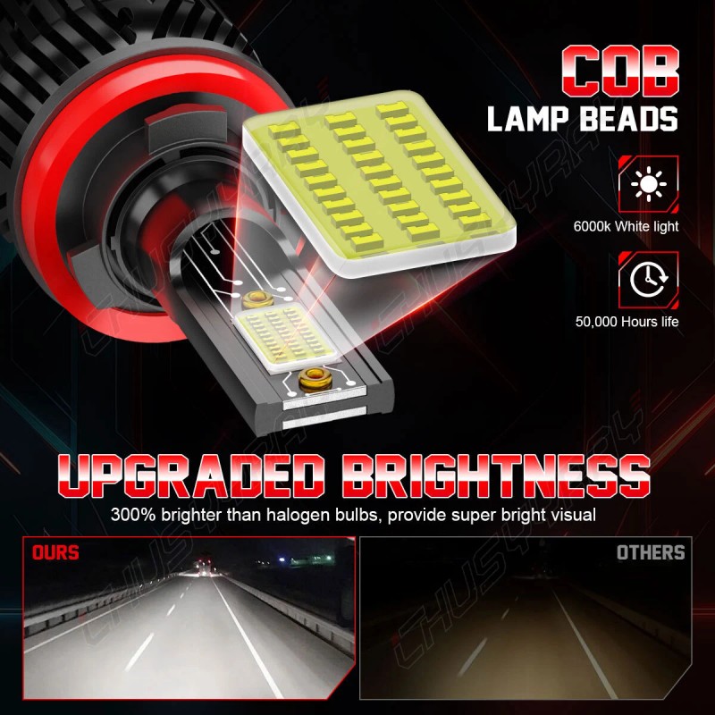 CHUSYYRAY 4x H11+H11 LED Headlight Bulbs High Low Beam Kit 6000K Fits Pontiac G6 2005-2007