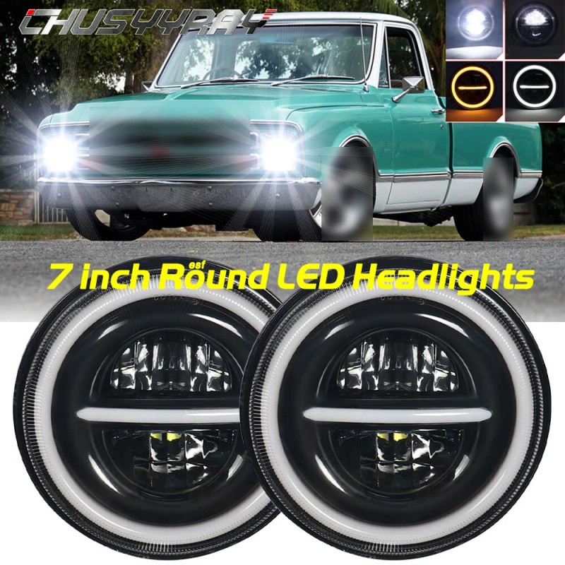 CHUSYYRAY 7"Inch LED Headlight Round High Low & Turn Signal Bulb for Chevy G10 G20 C10 C20