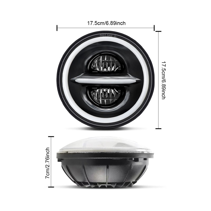 2x 7-inch round LED headlight (with 2*adapter cable)