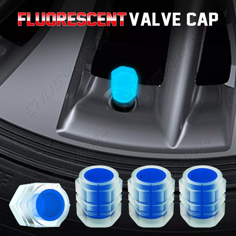 CHUSYYRAY 8PCS Fluorescent Car Tire Valve Caps Luminous Tire Valve Stem Cap Blue w/tool