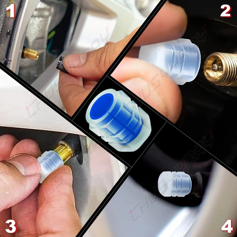 - Blue Fluorescent Car Tire Valve Cap Function