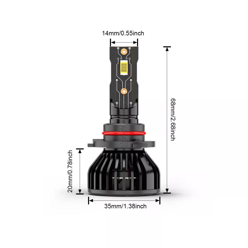 9005 / HB3 LED bulbs are designed with full-body aluminum material, copper tube, and external drive for fast cooling and ensuring a lifespan of up to 50,000 hours.