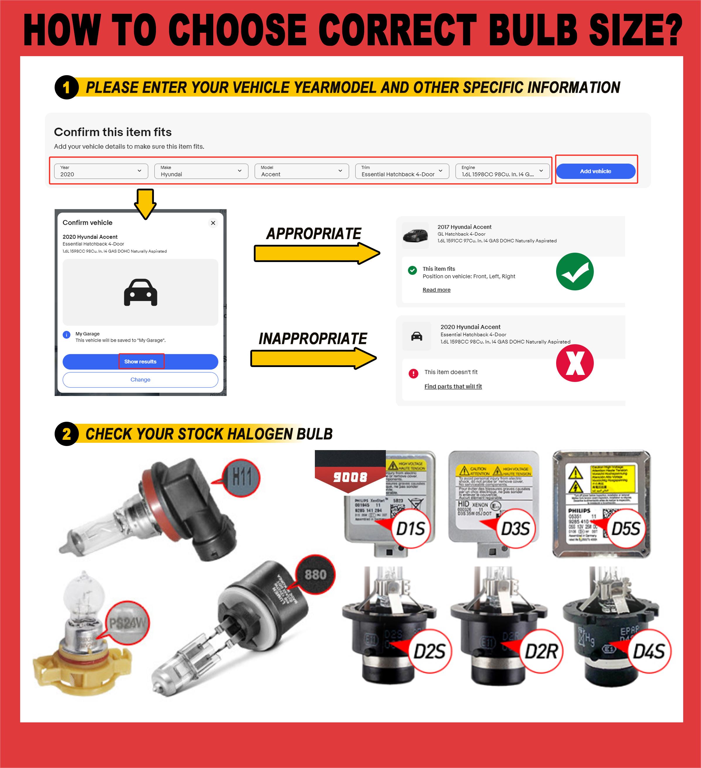 1:1 size with non-polar design for higher compatibility and simple installation perfectly fits into the headlight housing and factory plug without any modification.