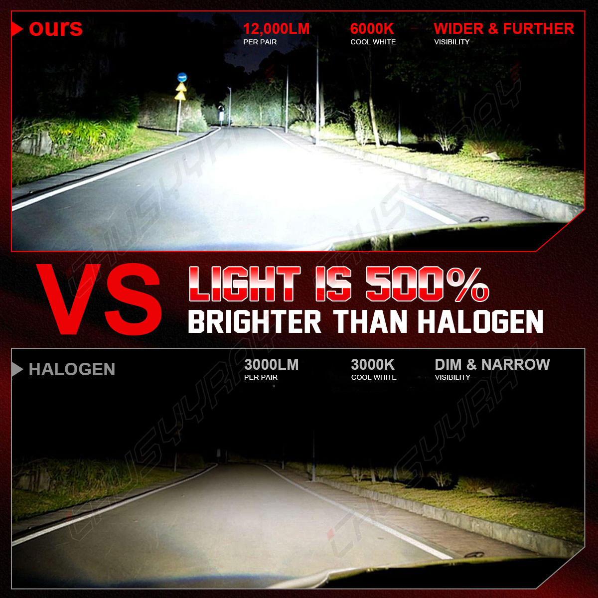 9005 / HB3 led headlight bulbs designed with 6 chips per side are 5 times brighter than stock bulbs. 6000K cold white improves visibility at night and helps you see more clearly even in extreme weather.