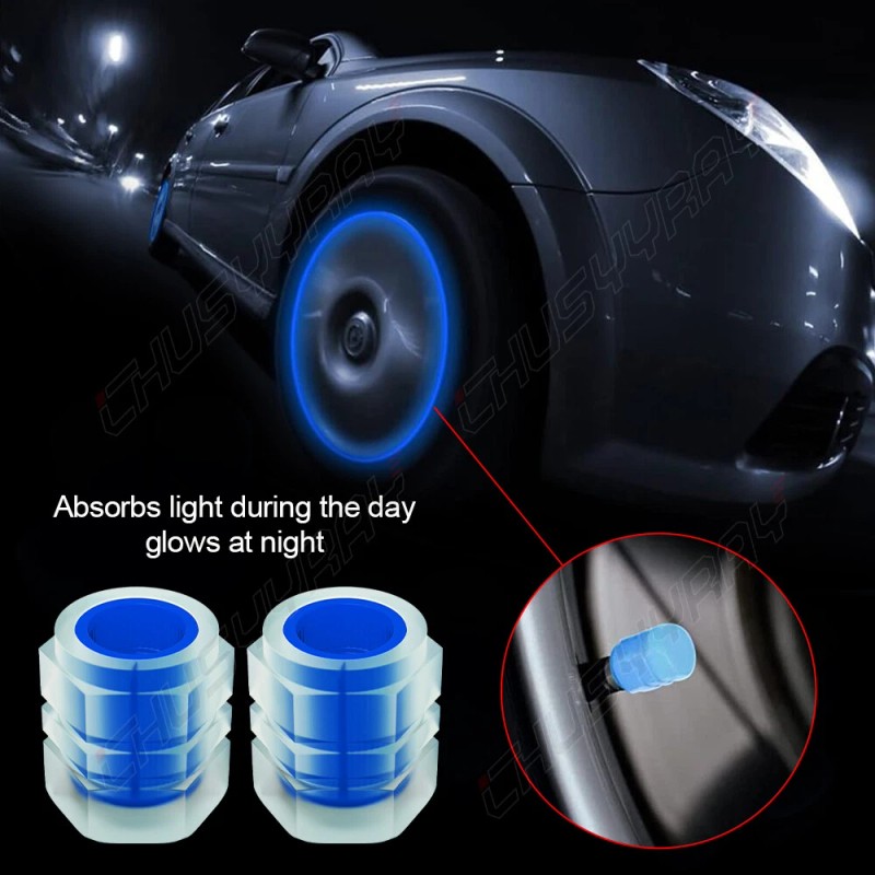 CHUSYYRAY Fluorescent Car Tire Valve Cap Luminous Bike Tire Valve Stem Caps Blue 8x