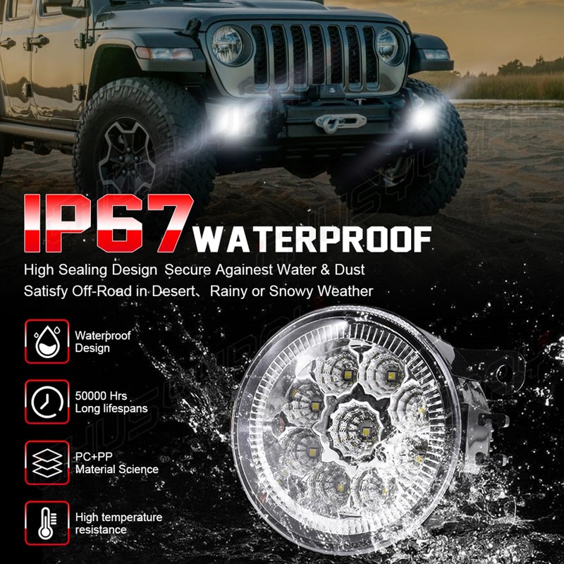 - 【Rugged and Durable Structure】Waterproof IP68, sturdy shatterproof lens, fully sealed, waterproof, impact-resistant, corrosion-resistant, durable. The superior glass lens features higher transmittance, UV and heatresistance, compatible with OEM-grade housing design, no flicker, perfect replacement for broken halogen fog lamps.