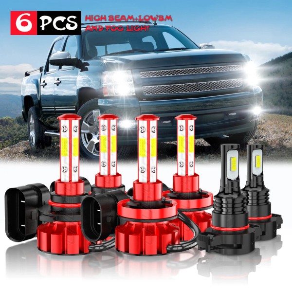 CHUSYYRAY For 07-13 Chevy Silverado 1500/2500/3500 6x LED Headlight Fog Lights Replacement