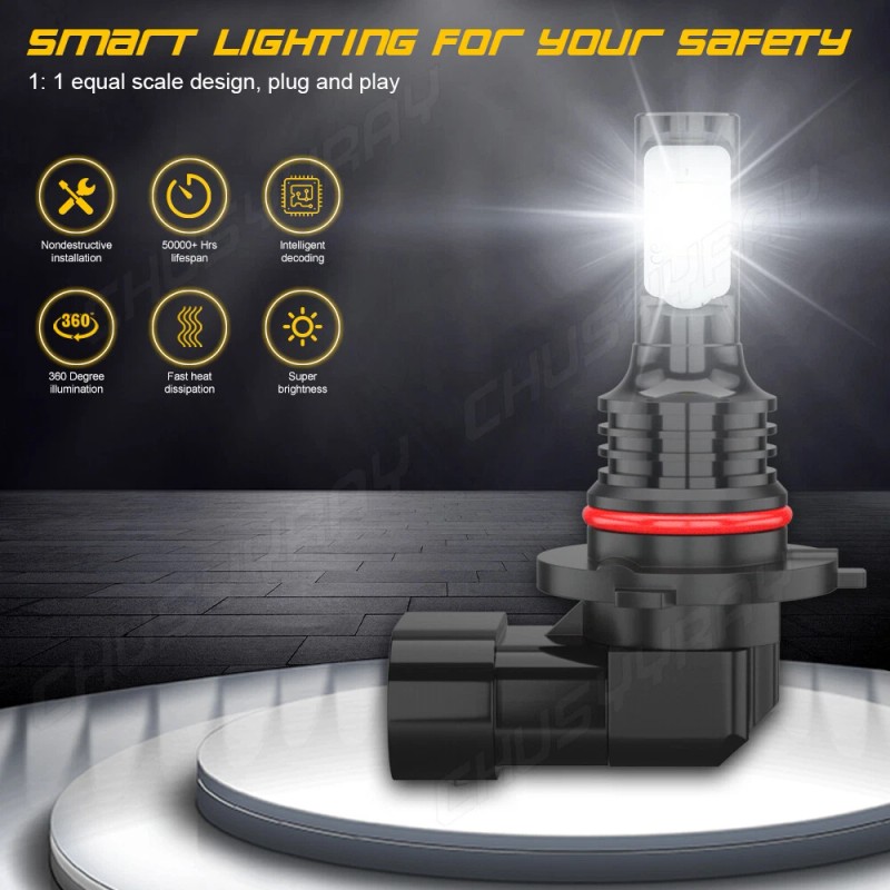【500% Brighter Than Halogens】CHUSYYRAY LED Bulbs adopt top automotive-grade LED CSP-3570 chips with 16,000LM per set, LED fog lights provide a brightness of 6000 LM,The LED bulbs are both 6500K cool white,which is 500% super brighter than original halogen bulb, Provide brighter and clearer lighting effects, enabling drivers to see the road ahead more clearly, thereby improving driving safety.