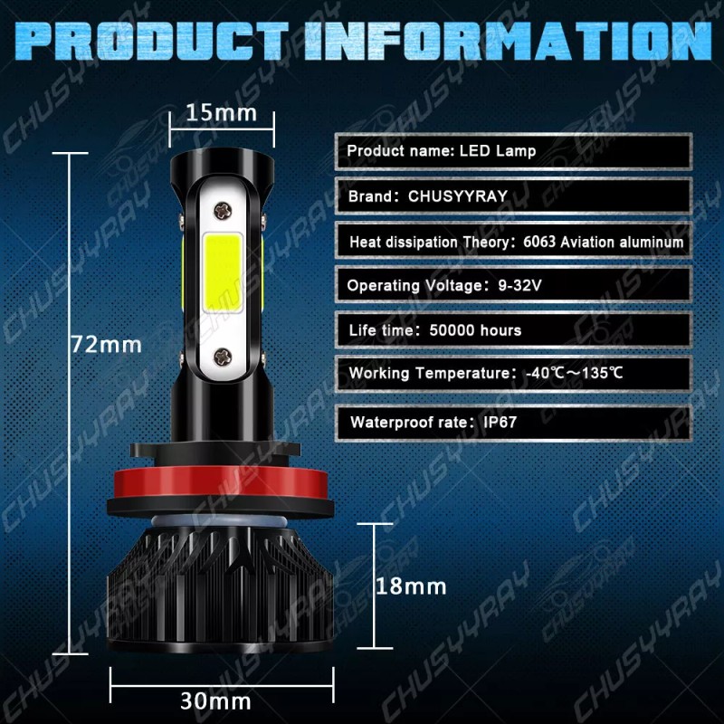 *Latest COB chip(USA) light source, 4 luminous faces no blind zone