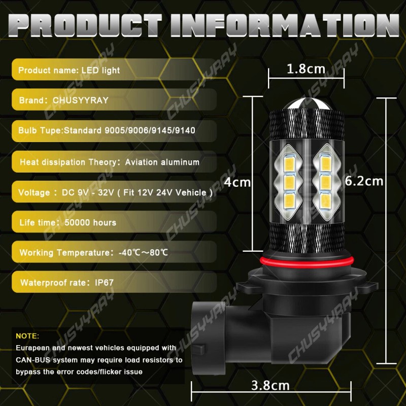 - Bulb Fitment Code: 9145/9140/9005/9006