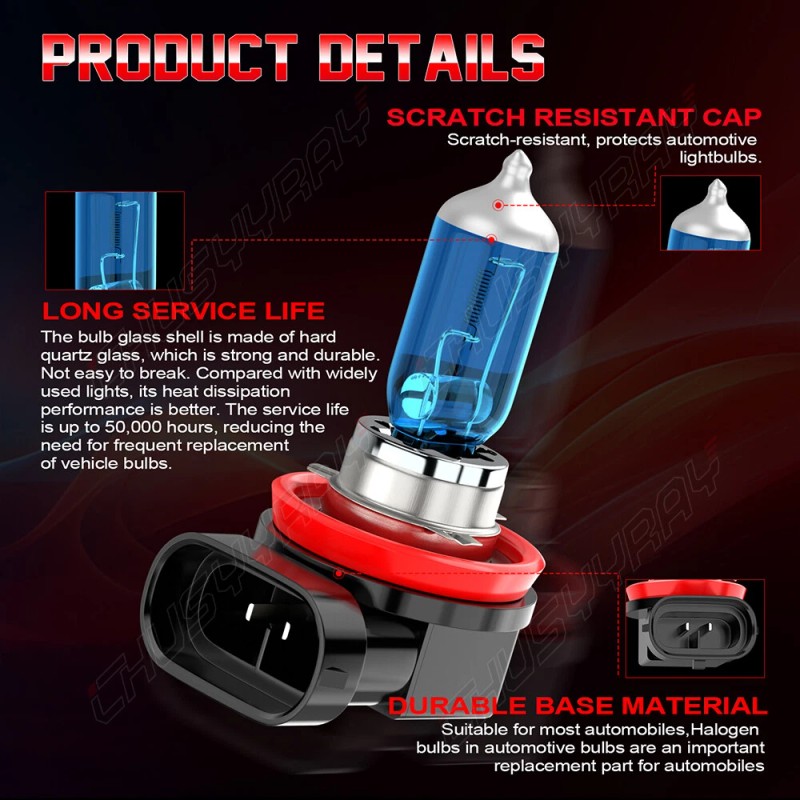CHUSYYRAY H11 Halogen Headlight Kit Low Beam Bulb Super Bright 6500K HID White 4000LM