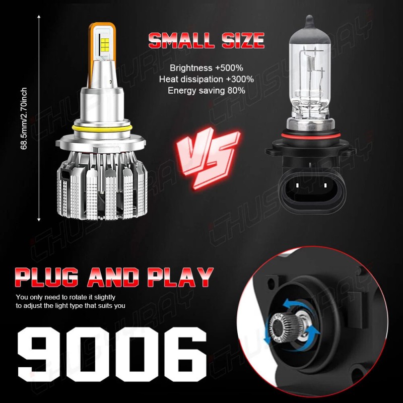 This listing compatible with 1 Pairs 9006 6000K white super bright LED headlight low beam bulbs conversion kit.