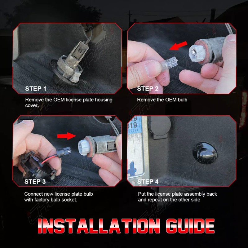 These new super bright 3 watt high power Bulb license plate light sets are at least 3 times brighter than the factory and will give your car a modern and luxurious look with enhanced nighttime security