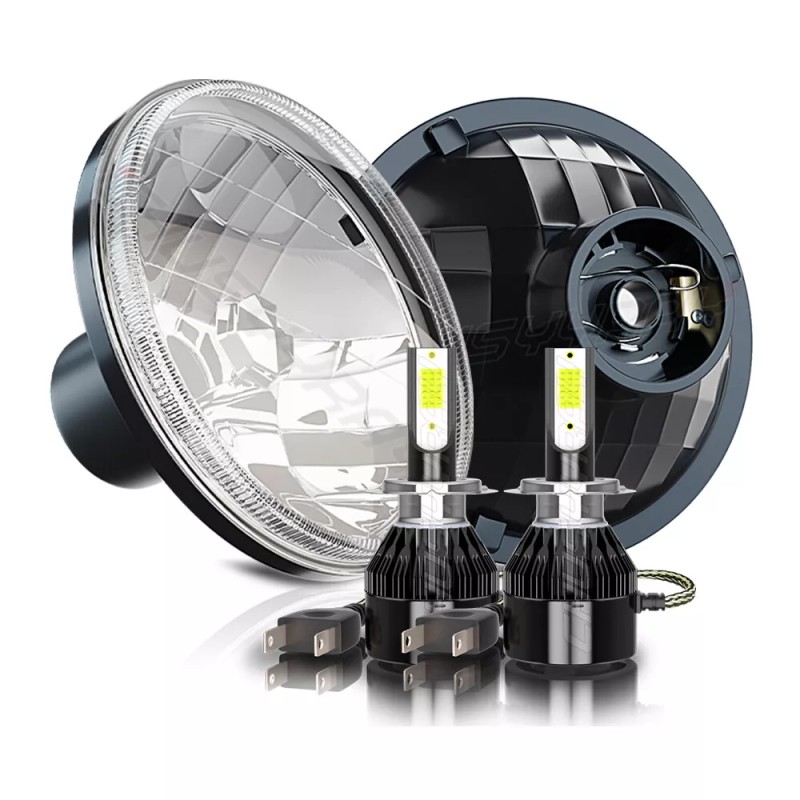 - Modification Description: Pair 7 INCH Round Headlights Housing +H4 LED Bulbs