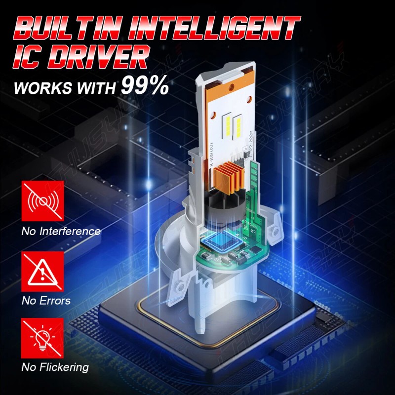 • 【99% Vehicles Compatible】: Upgraded SD25 Series LED headlight bulbs built-in intelligent IC driver and almost identical to the power of halogen bulb for optimized compatibility. Work well with 99% of vehicles’ system. No errors & no flickering & no interference.