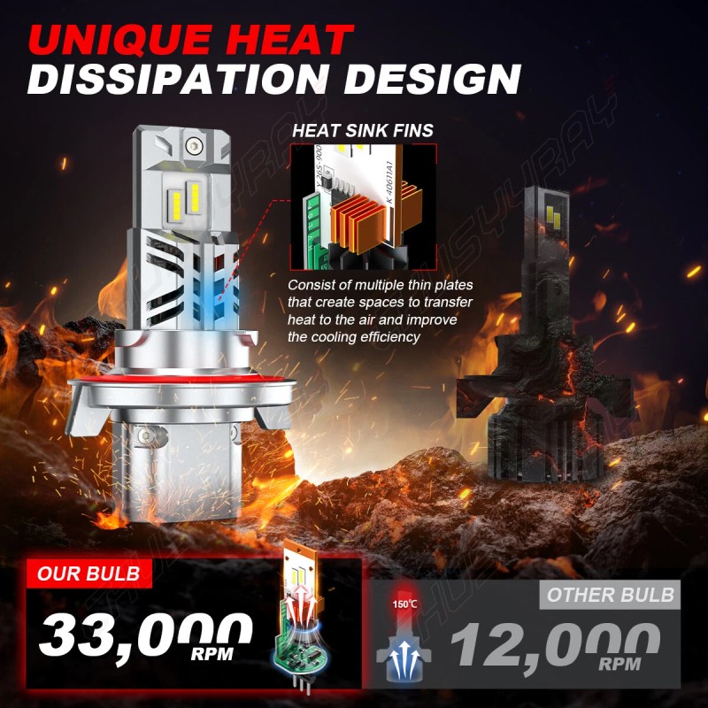• 【50,000 Hrs Up Lifespan】: SD25 Series 9008 H13 LED bulbs are designed with full body aluminum material, built-in 33,000RPM high-speed silent cooling fan effectively pull the heat away from the LED chips, ensuring a lifespan of up to 50,000 hours, say goodbye to the trouble of frequently changing headlights