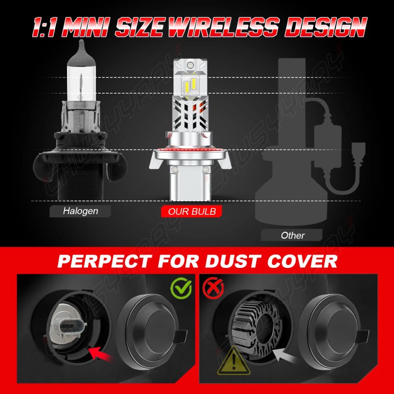 • 【Upgraded Beam Performance】: The 0.16 inch ultra-thin base board makes 9008/H13 headlight bulbs closer to the light-emitting area of the halogen bulb, ensuring 360° lighting without black spots. No glare to oncoming vehicles and drivers. The light is more focused on the ground, and the irradiation range is wider and farther, providing you with a more comfortable and safer driving environment