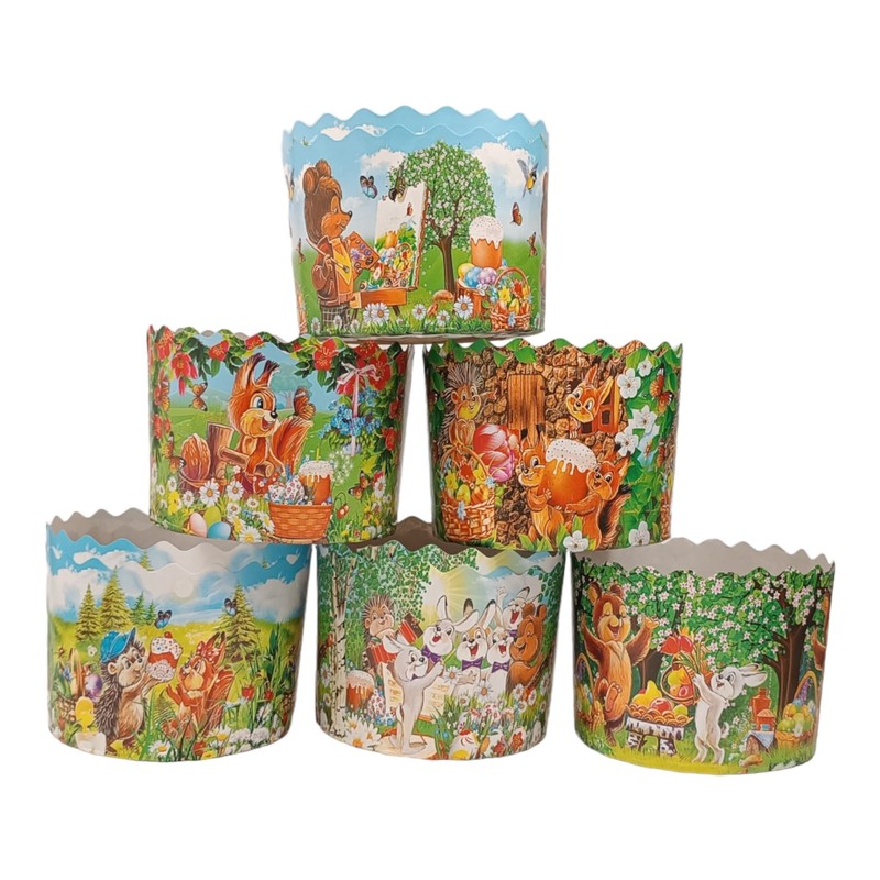 chutemka - 12 Pack | 12 oz Different designs of Paper Mold, Round Easter Bread Baking Paper Molds (Children's)
