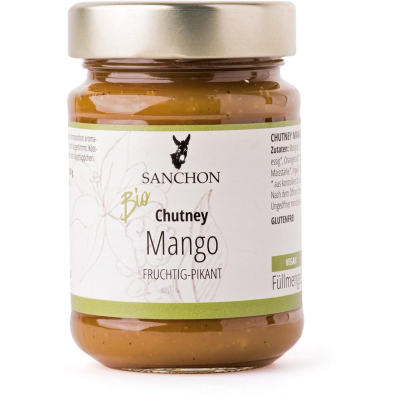 Flavour: Storage and usage instructions: After opening, please store in a cool place and use soon. Processing: the fruity chutneys from Sanchon are real all-rounders. Made in the traditional way, they are classically served as a sweet, slightly hot side dish to Indian vegetable and rice dishes. They also taste excellent with cheese and as a sweet-spicy spread. Processing/preparation: chutneys are eaten cold or warm with tofu, fish and meat and are also ideal for raclette, vegetables, terrines, rice bars, potato dishes or as a bread topping. Certification * German state organic seal * EU organic seal