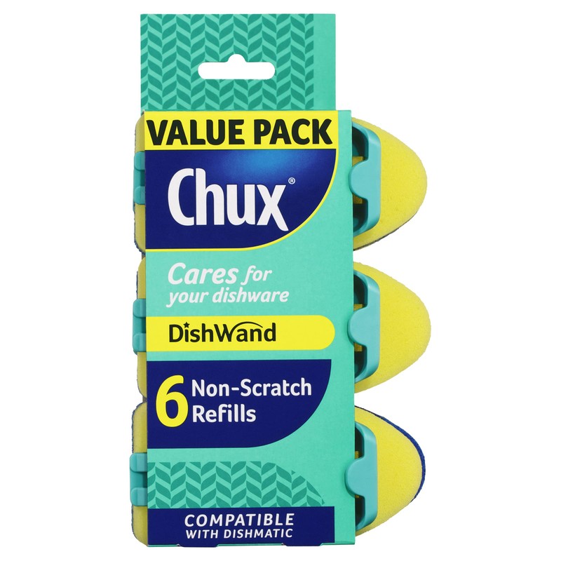 Chux Dishwand Sponge Scourer Refills, Non-Scratch and Angled, Made with Recycled Plastic, 6 Count