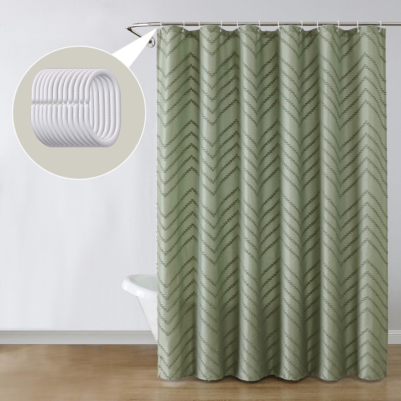 Chyhomenyc Chevron Extra Long Light Sage Green Boho Shower Curtain Set 72x78 inches, Fabric Shower Curtain Modern Farmhouse Chic Textured Tufted Chevron Striped Cute Hotel Bathroom Shower Curtain