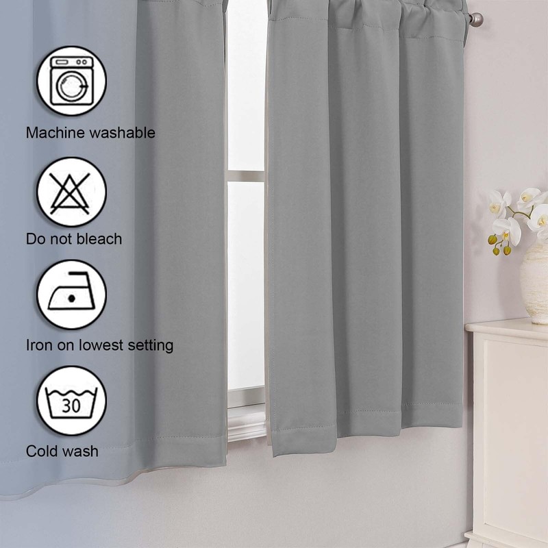 Chyhomenyc Silver Grey Short Blackout Curtains 36 Inch Length, Small Kitchen Curtain Tier Rod Pocket Half Window Curtains for Bathroom Basement Cabinet Camper RV Bunk, 2 PCS, Each 30" Wx36 L
