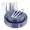 Ciaell 150PCS Blue and Silver Disposable Plastic Crockery set - Weddings & Party