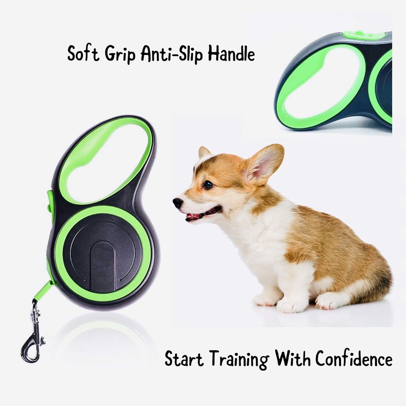 Cian Retractable Dog Leash 16 ft Strong Durable Walking Leash Reinforced Nylon Ribbon One Touch Upgraded Locking System, One Button Break, Tangle-Free, Anti-Slip Rubberized Handle (Green)